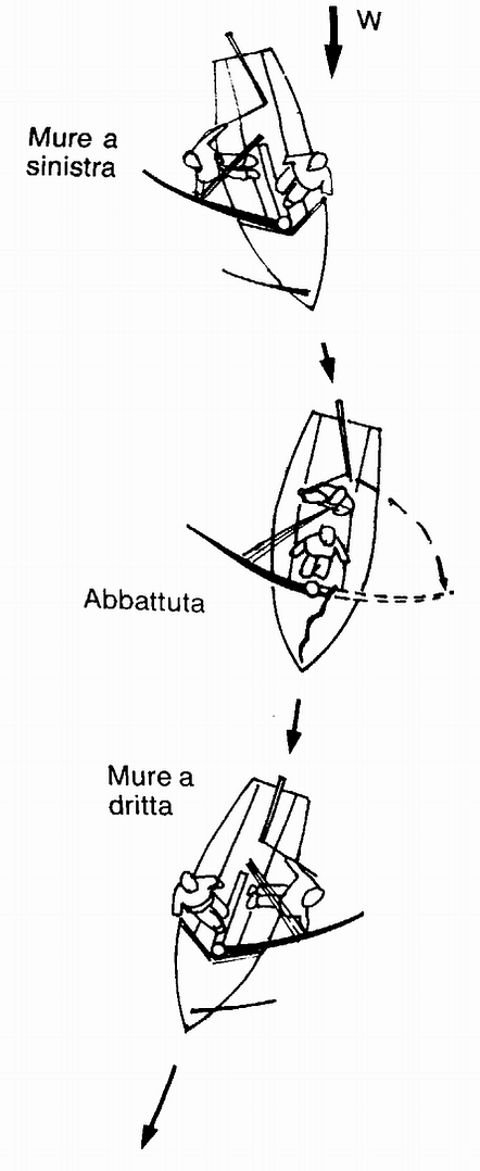 Nelle barche a vela, l’abbattuta, chiamata anche impropriamente strambata (termine che indica propriamente il passaggio del boma)