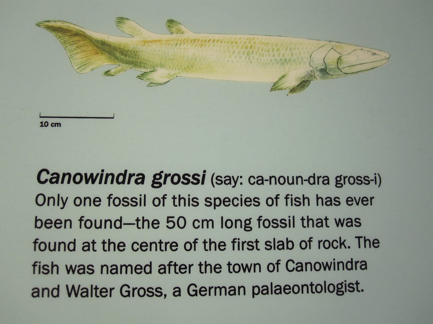 I fossili di questo animale furono scoperti nel 1956, ma vennero descritti solo vent’anni dopo. L’esemplare tipo è conservato in una lastra, circondato da più di cento pesci placodermi molto più piccoli. Canowindra appartiene ai pesci dalle pinne lobate, gli osteolepiformi, tra i quali si originarono i vertebrati terrestri. Canowindra, tuttavia, possedeva alcune caratteristiche che lo distinguono da tutti gli altri osteolepiformi, ed è posto in una famiglia a sè stante (Canowindridae). Resti di animali simili sono stati ritrovati in Australia (Victoria) e in Antartide.